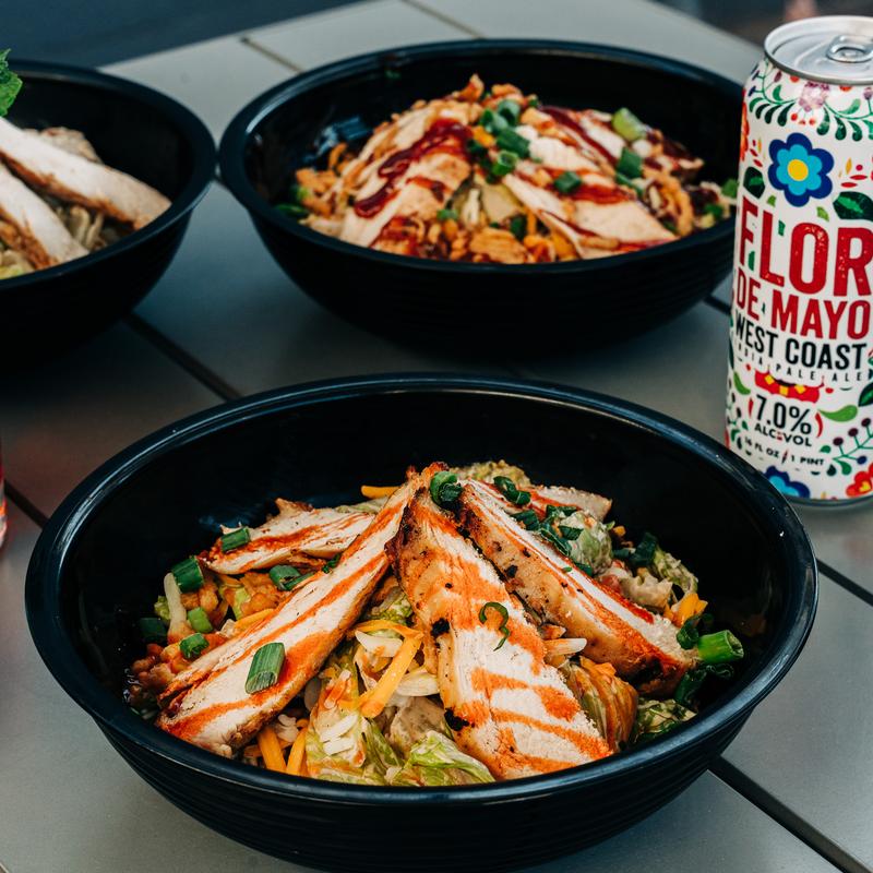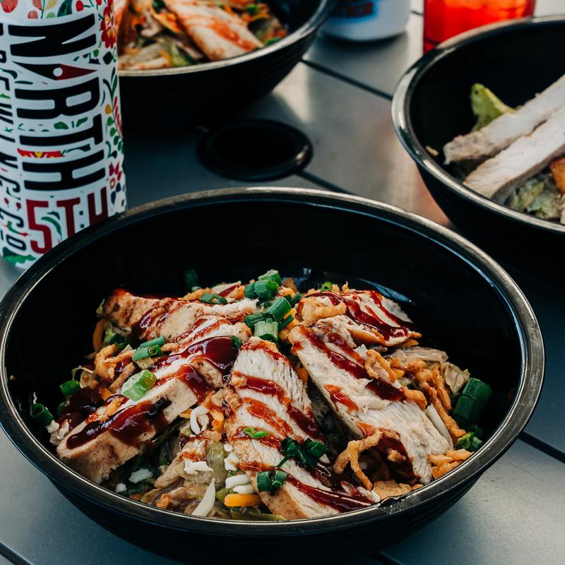 Romaine lettuce tossed in honey sriracha BBQ and topped with pico de gallo, cheddar cheese, grilled BBQ chicken, green onions, and crispy onions.